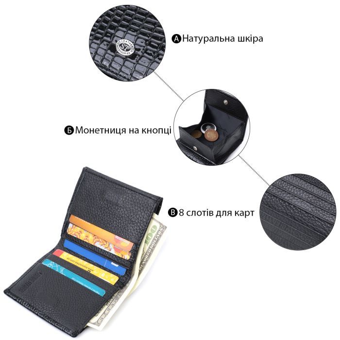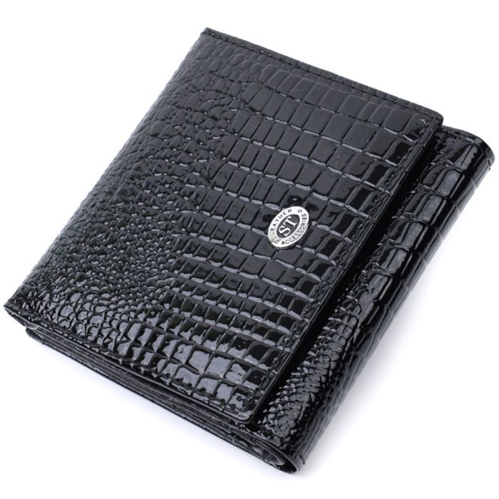 Гаманець ST Leather З натуральної лакованої шкіри Чорний (22688)