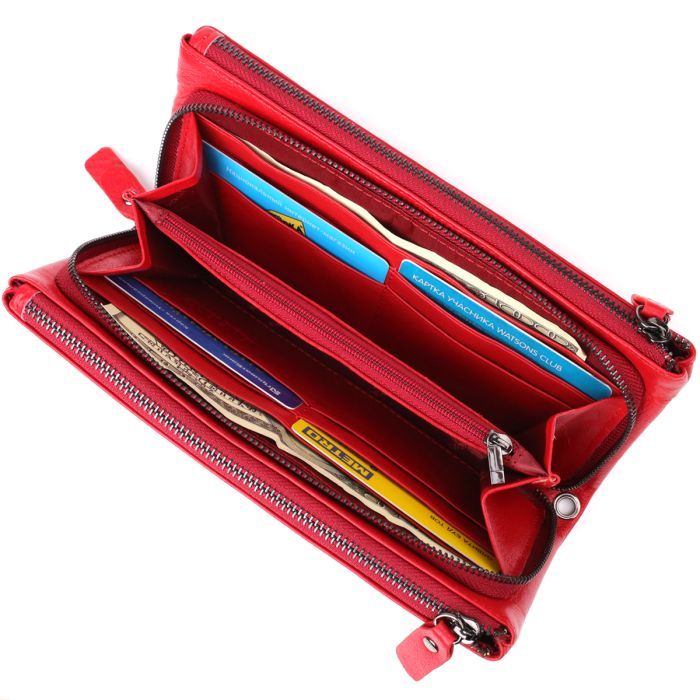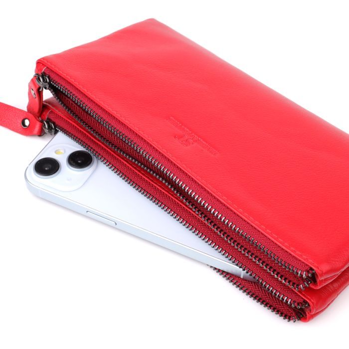 Гаманець ST Leather Шкіряний на три відділення Червоний (23109)
