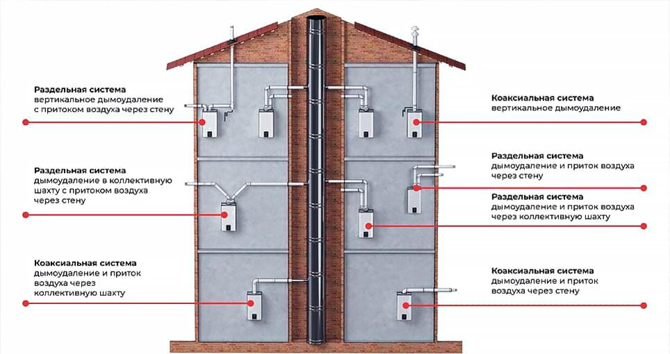 - Тип дымоход для котла
