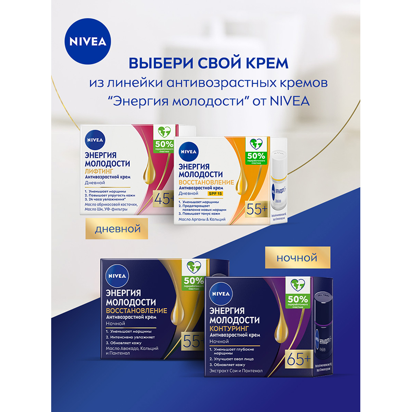 Крем для лица `NIVEA` Энергия молодости Контуринг антивозрастной 65+ spf 30 (дневной) 50 мл