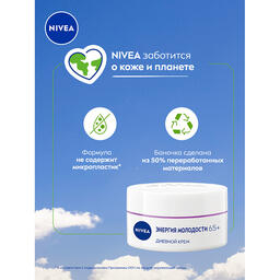 Бренд NIVEA заботится о коже и планете, поэтому формула крема не содержит микропластик, а баночка сделана из 50% переработанных материалов.