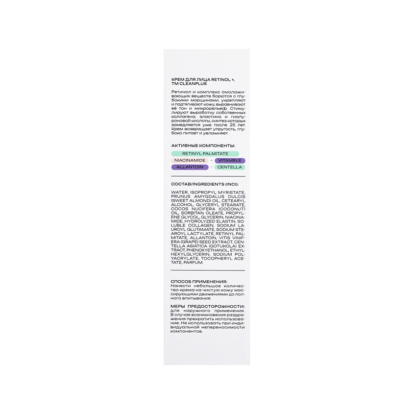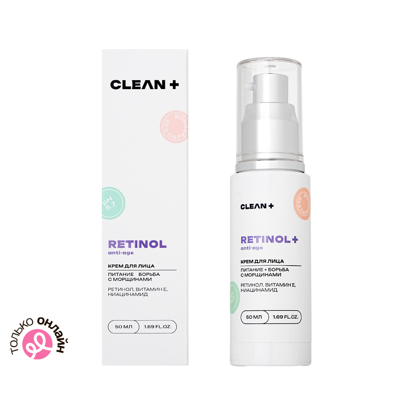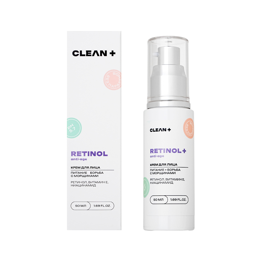 Крем для лица `CLEAN+` RETINOL ретинол, витамин E, ниацинамид 50 мл