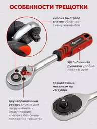 • Трещотка 1/2″ (24 зубца), 1/4″ (24 зубца)