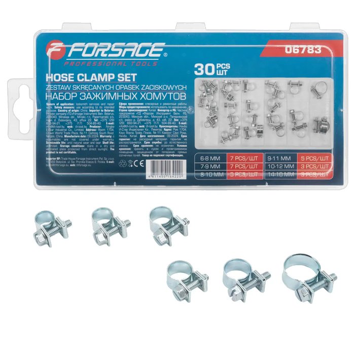 Набор хомутов червячных Forsage F-06783 (65433), (30шт)