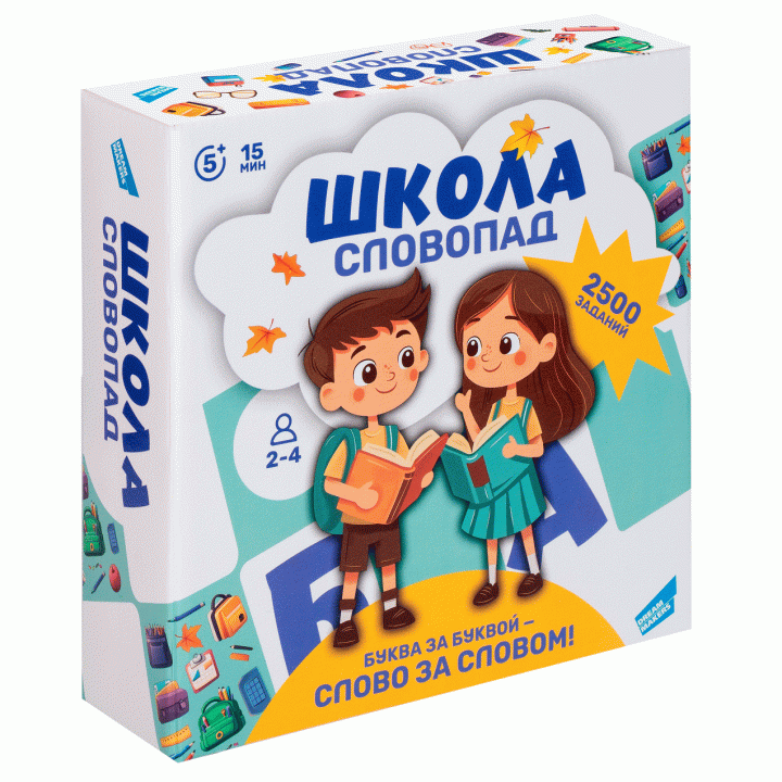 "Словопад. Школа" — это динамичная игра для детей и взрослых, которая превращает изучение слов в веселое соревнование! Игроки учатся быстро мыслить, подбирать ассоциации и вспоминать школьные знания.