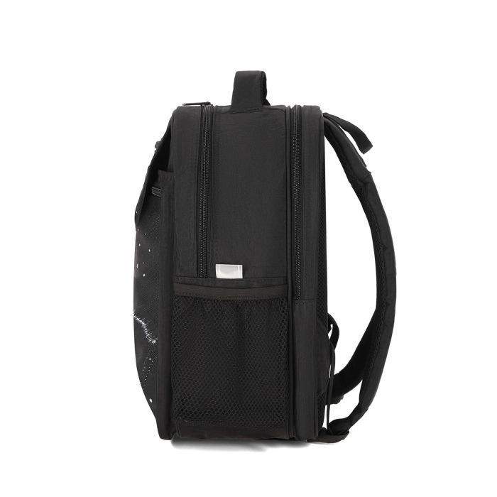 Ця модель має два відділення: найбільше підійде для підручників, зошитів, іграшок, а менше — для кольорового паперу й картону, альбому для малювання тощо. Спереду ззовні є кілька кишень для всього необхідного. Додатково є бічні відсіки з сітки для пляшки з водою чи термоса.