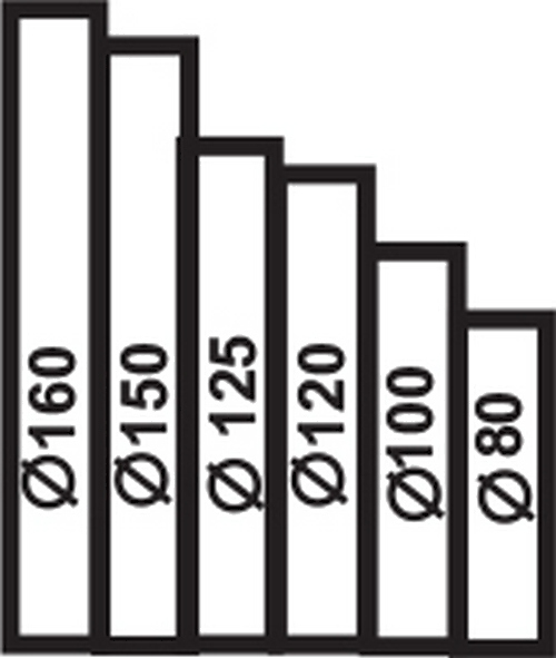 - Диаметр круглого отверстия 80 мм, 100 мм, 120 мм, 125 мм, 150 мм, 160 мм