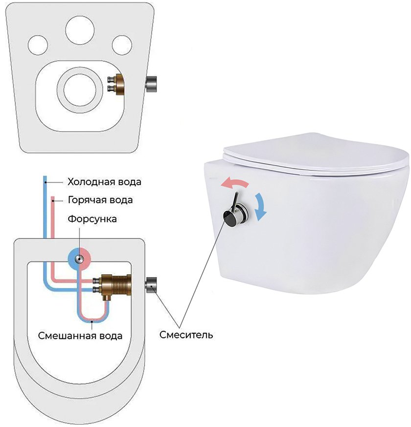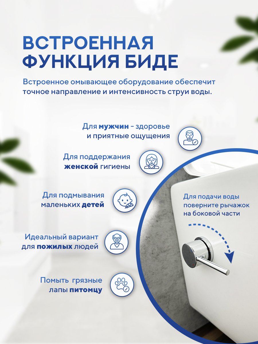 Встроенная функция биде обеспечивает точное направление и интенсивность струи воды;