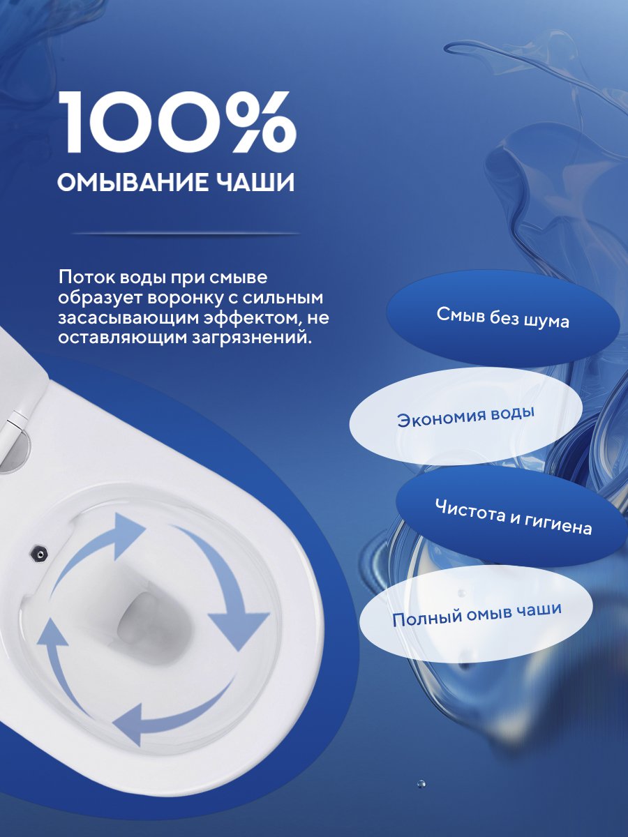 Поток воды при смыве образует воронку с сильным засасывающим эффектом, не оставляющим загрязнений;