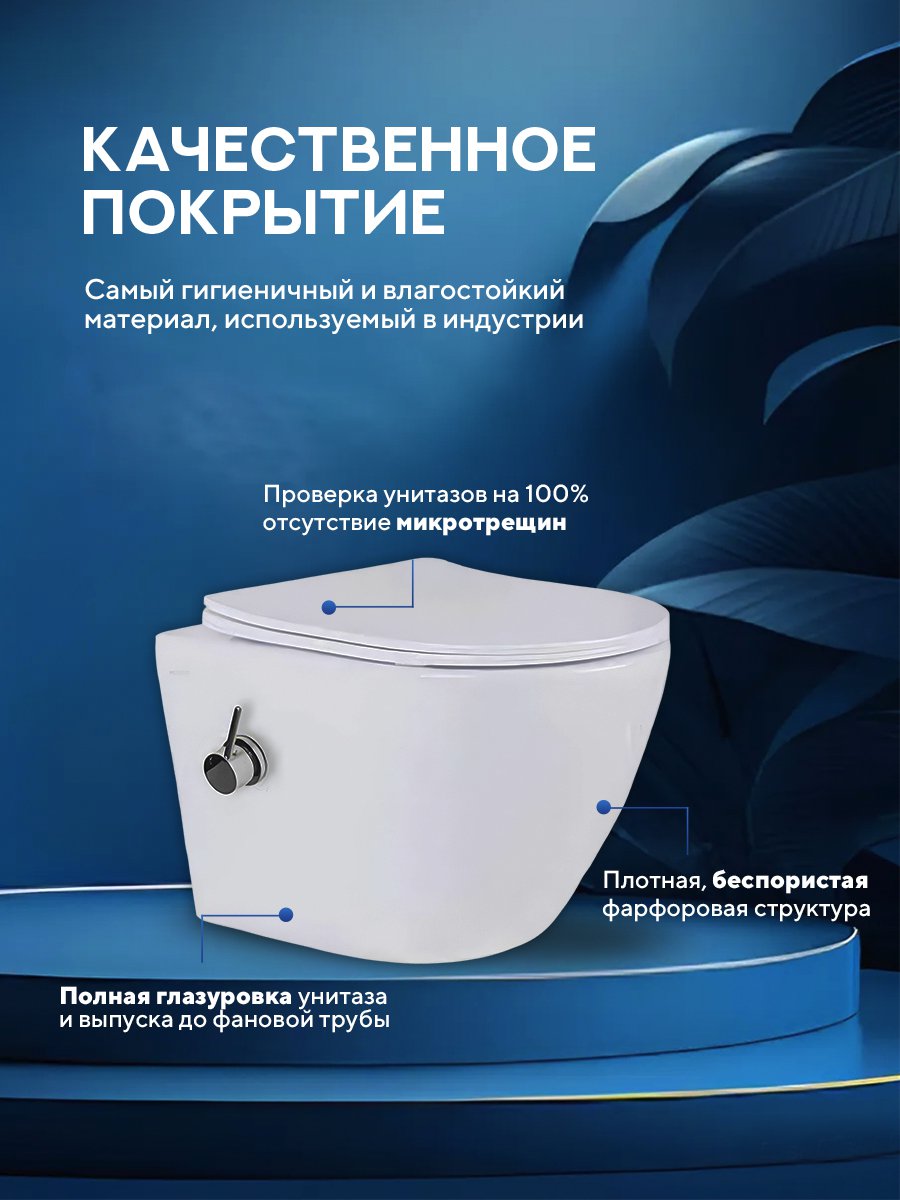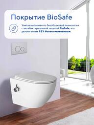Покрытие BioSafe. Унитаз выполнен по безободковой технологии с антибактериальной защитой BioSafe, что делает его на 95% более гигиеничным;