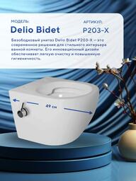 Безободковый унитаз Delio P203-X - это современное решение для стильного интерьера ванной комнаты, Его инновационный дизайн обеспечивает легкую очистку и повышенную гигиеничность;