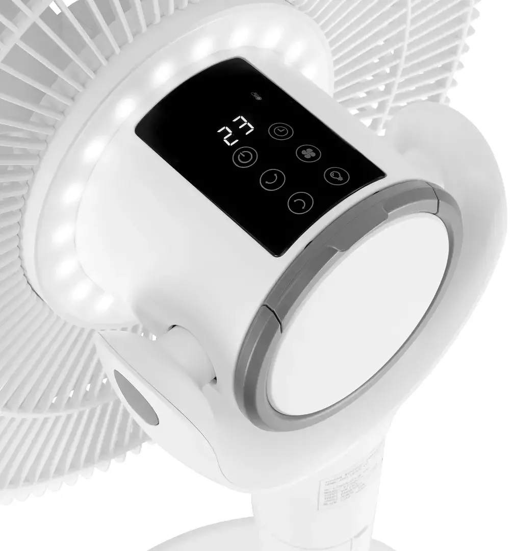 • Особенности Индикация комнатной температуры. Таймер на 9 часов. Дистанционная регулировка угла наклона и поворота. Встроенный ночник.