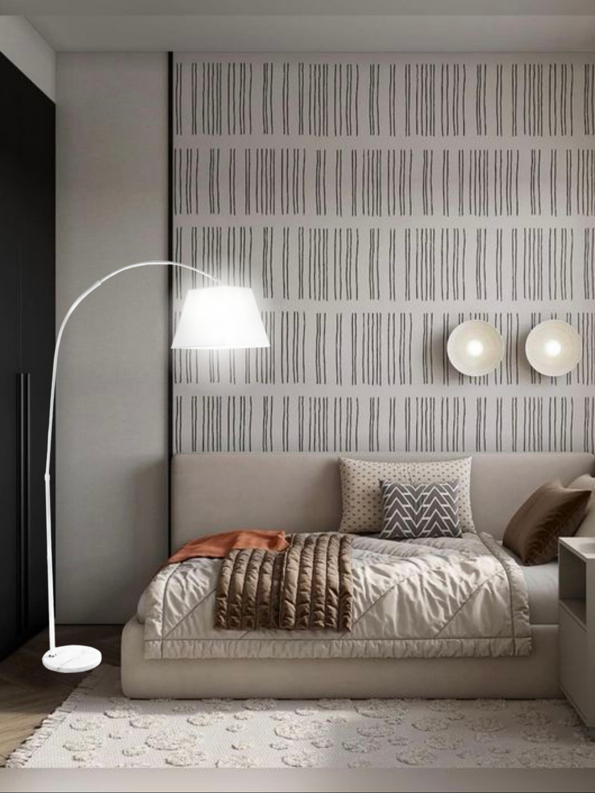 Светильник напольный предназначен для освещения жилых помещений. Основание - металл. Цвет- белый Плафон-текстиль Тип патрона -E27. Технические характеристики~220В
