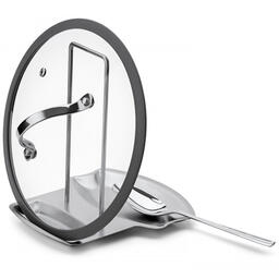 Подставка предназначена для размещения крышки и кухонного прибора (ложки/половника/лопатки) во время приготовления пищи. Подставка помогает защитить кухонные поверхности от загрязнений и высокой температуры.