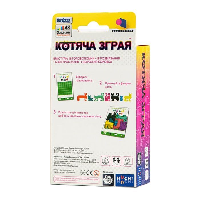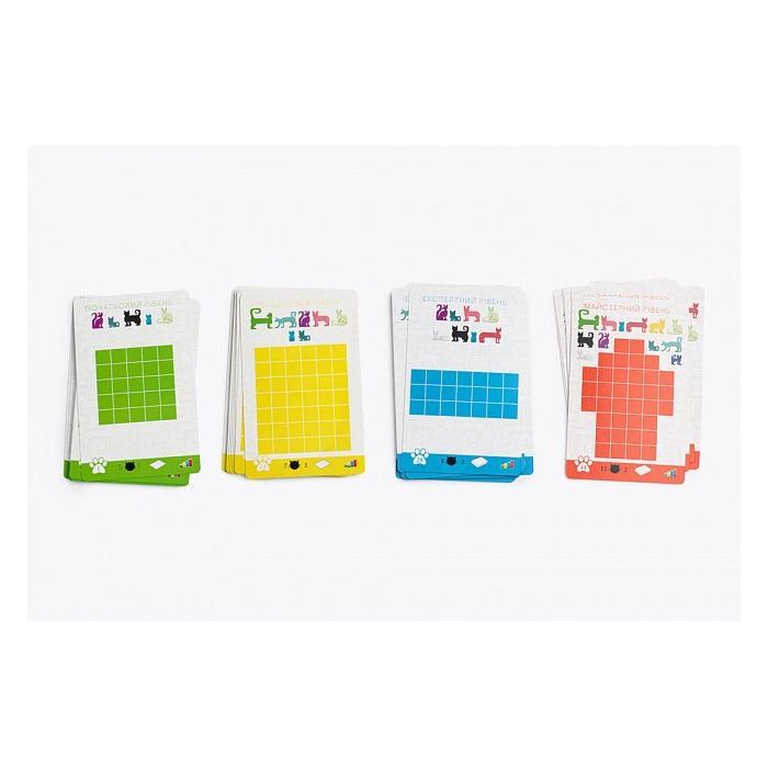 • Комплектація 44 головоломки; 44 розв’язання; 12 фігурок котів; 1 дорожній пластиковий кейс.