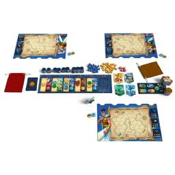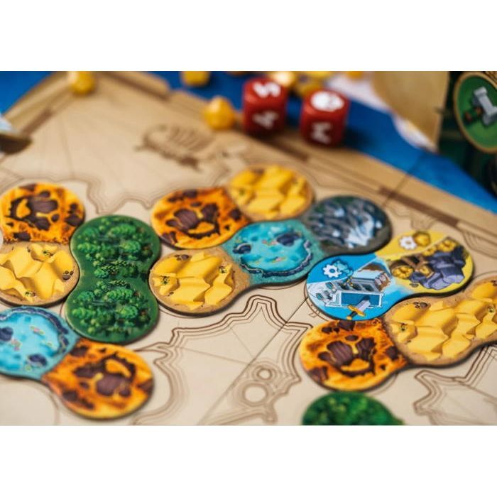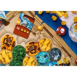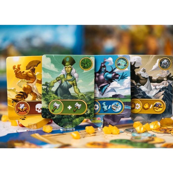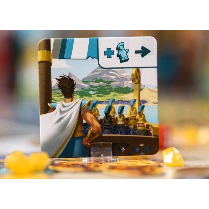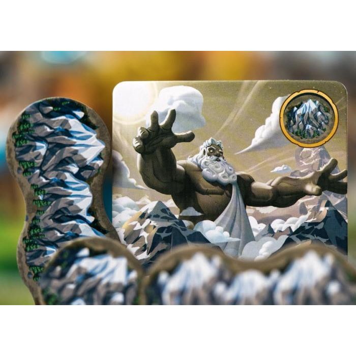 • Комплектація 4 планшети островів; 1 планшет створення; 17 переможних жетонів; 17 плиток храмів; 4 плитки титанів; 12 карток дії; 65 плиток земель; 4 плитки метрополії; 26 жетонів будівель; 20 фішок істот; 4 кубики бою; 30 гоплітів; 30 самородків орихалка; 1 фішка ініц