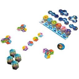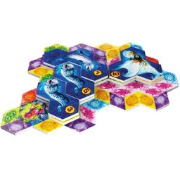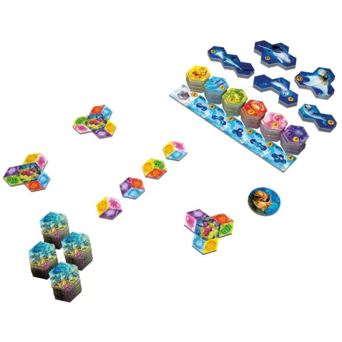 - Комплектація 70 плиток коралів; 72 плитки малих тварин; 15 плиток великих тварин; 24 жетони екосистем; 1 жетон морського равлика; 4 плитки осередків; 1 блокнот для підрахунку окулярів; правила.