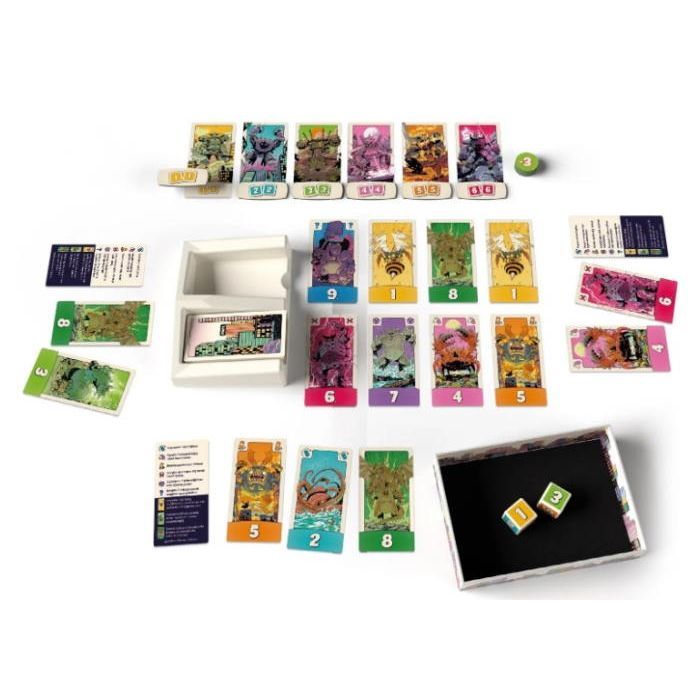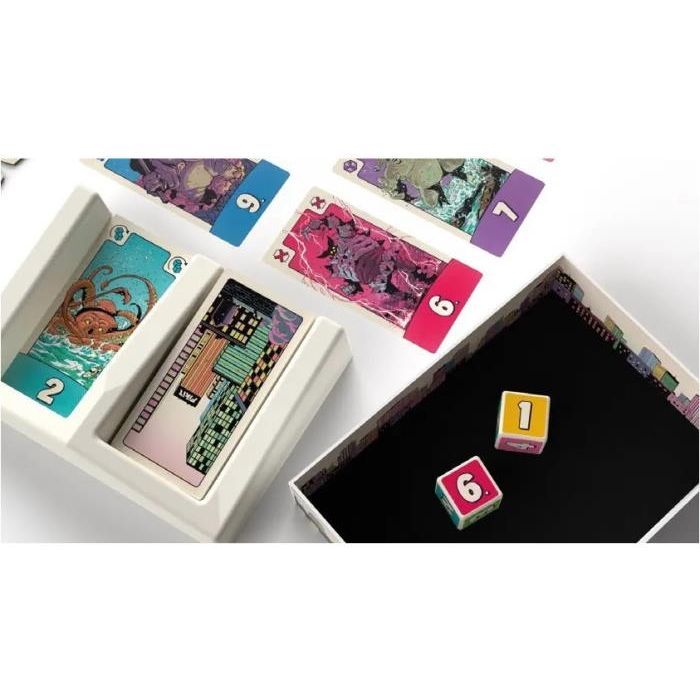 • Комплектація 63 карти, 2 кубики, 12 жетонів, 1 підставка для карт, правила
