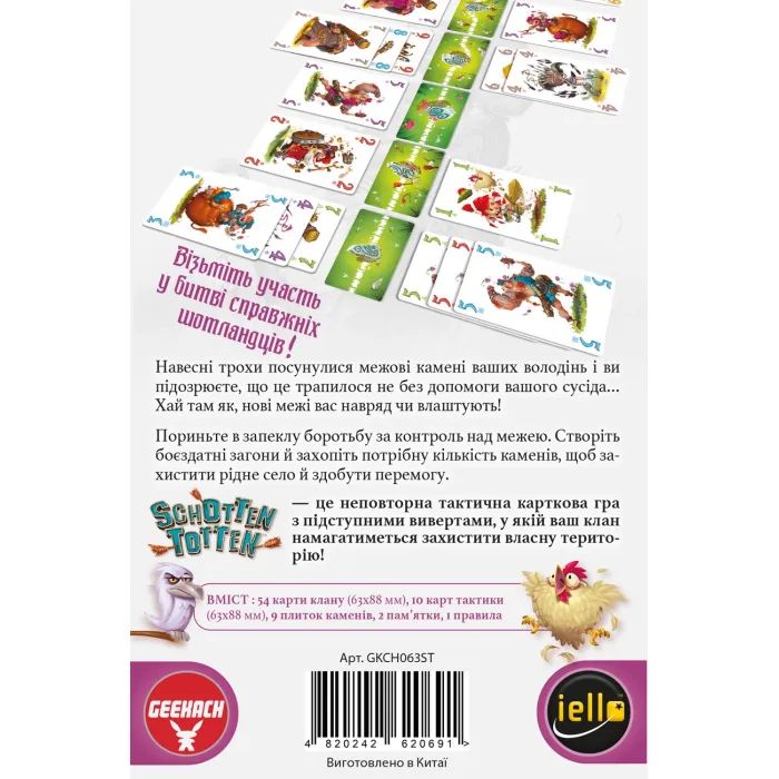 • Комплектація 54 карти клану, 10 карт тактики, 9 плиток каменів, 2 пам’ятки, правила