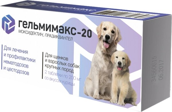 Таблетки от глистов Apicenna Гельмимакс-20 для щенков и собак крупных пород
