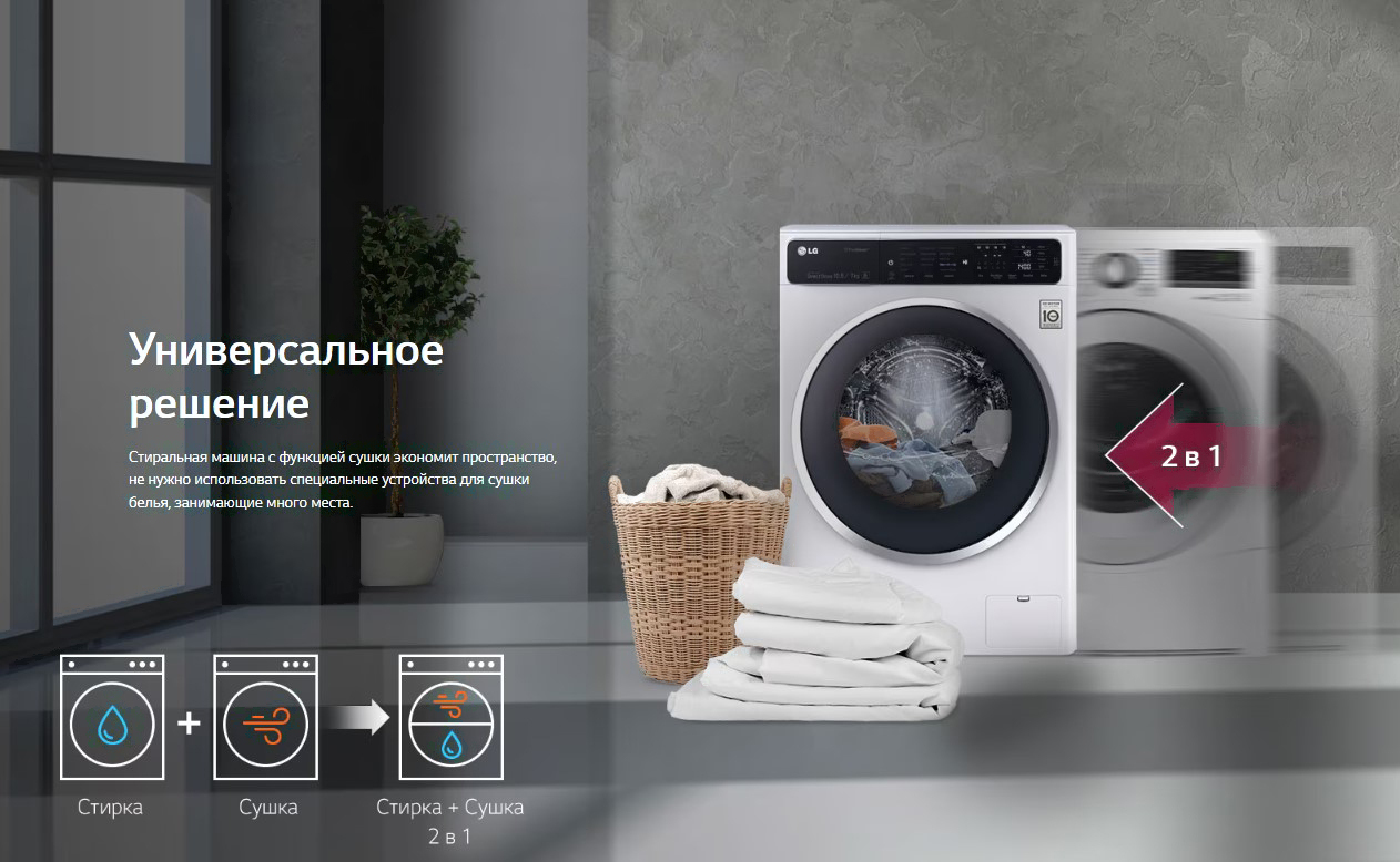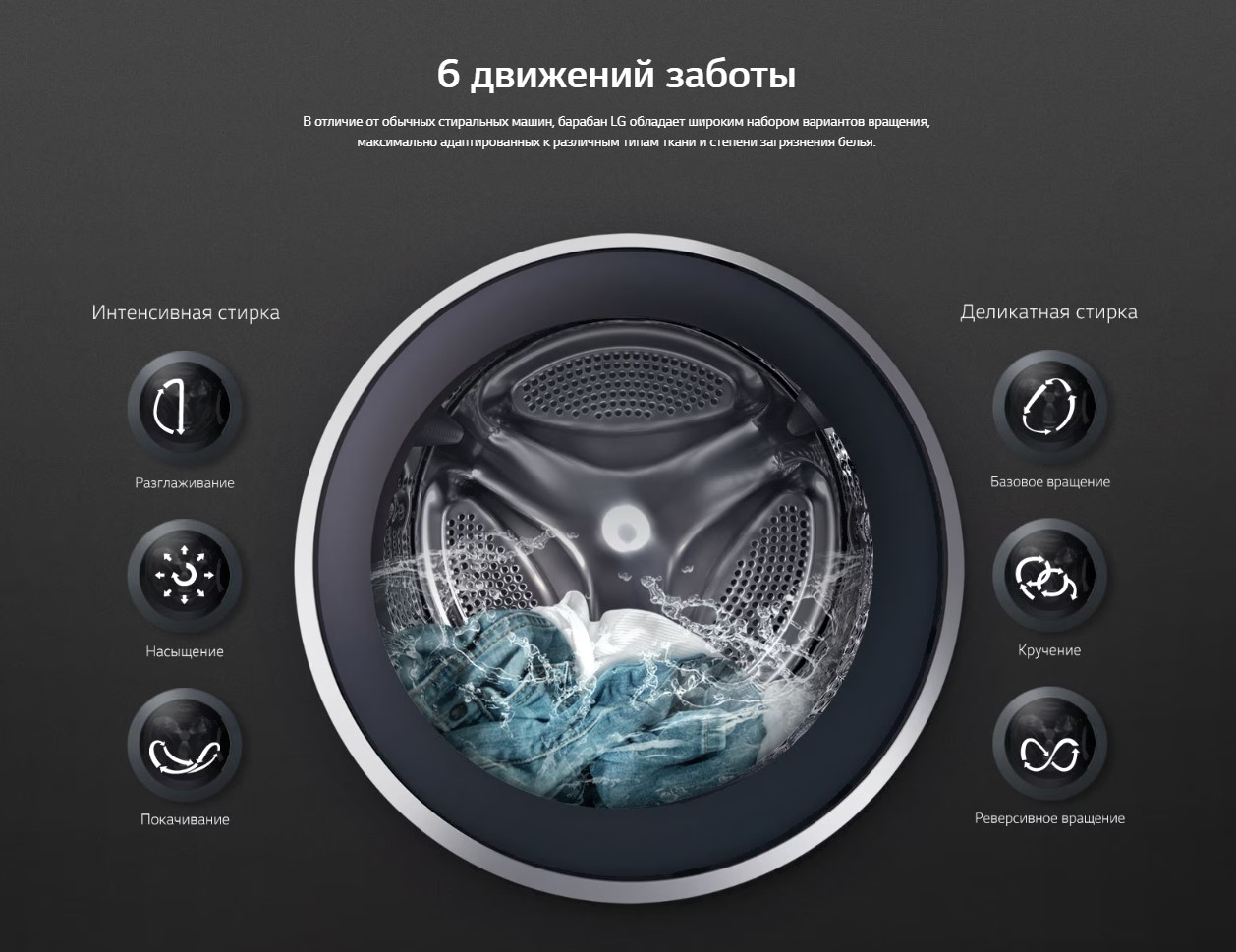 • Технологии 6 движений заботы (LG), Smart Diagnosis (LG), SpaSteam (LG)
