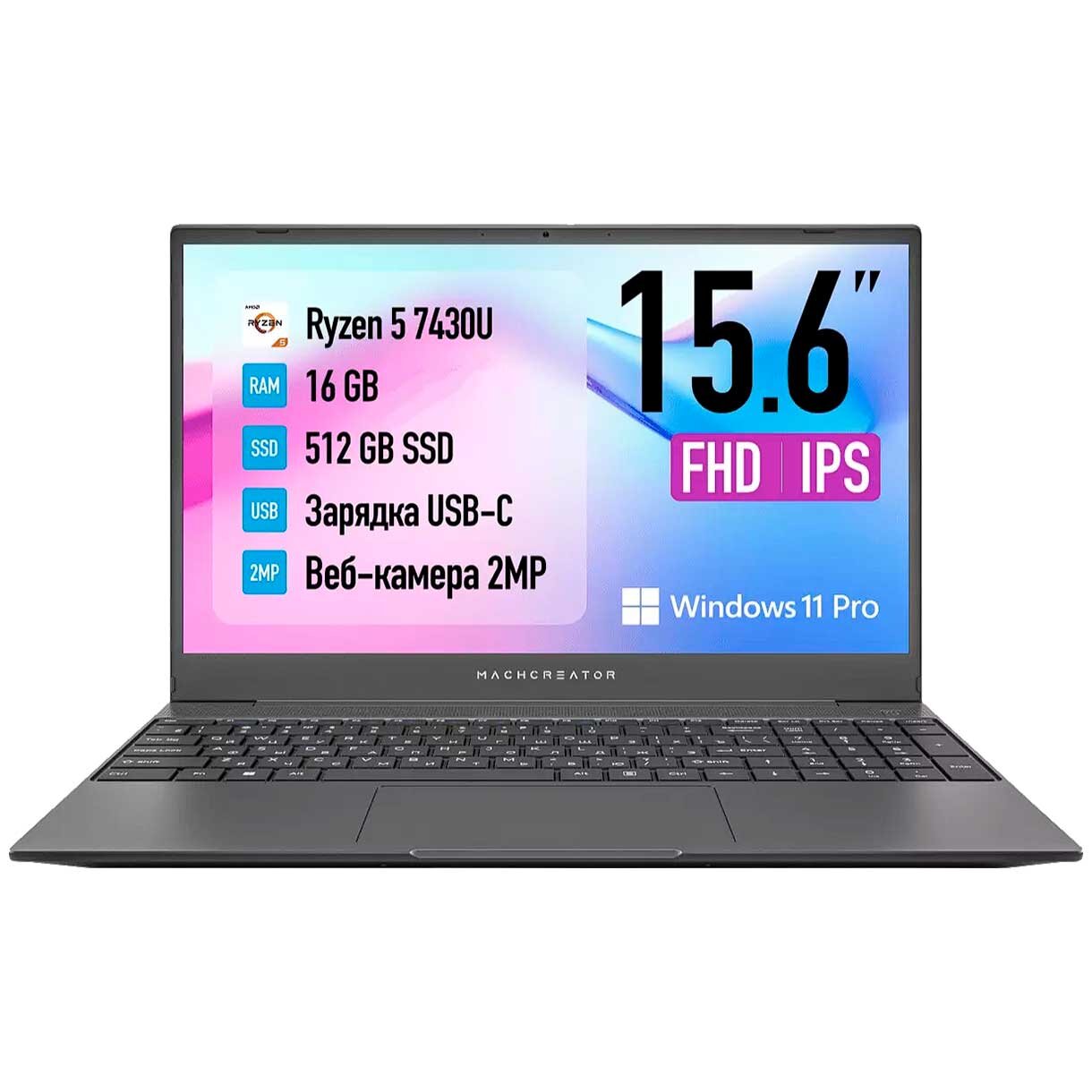 Ноутбук Machcreator One R5 (JJ00GB00GRU) 15.6 " Ryzen 5 7430U 6 ядер Radeon Vega 7 16 ГБDDR4 512 ГБSSD Windows 11 Professional серый 1.84 кг RuEng