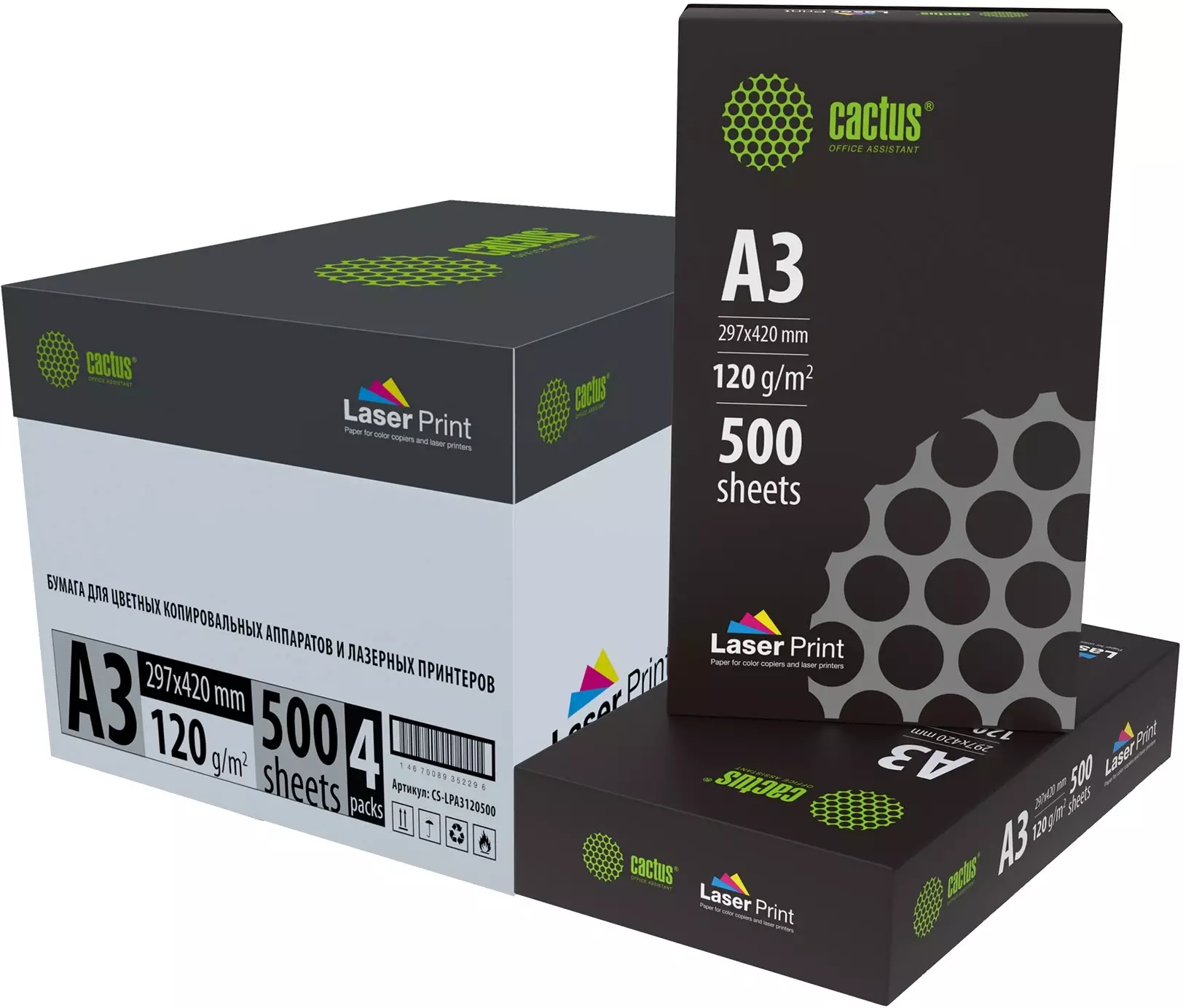 Бумага Cactus CS-LPA3120500 A3, 120г/м2, 500л., белый