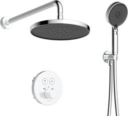 - Комплектация ручной душ (душевая лейка)верхний душ (тропический)смесительдушевой шлангкрепление ручного душанастенный кронштейн