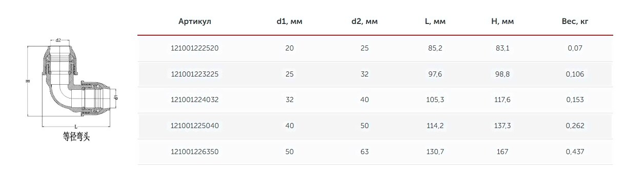 • Тип соединения компрессионное
