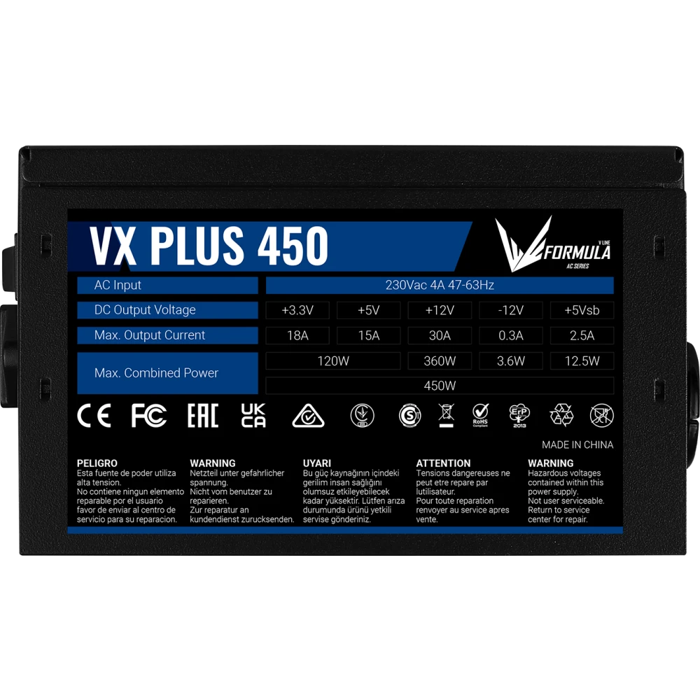 Блок питания FORMULA VX Plus 450 450W (4711401661634) (ATX, 20+4 pin, 1xPCIe 6+2P, 2xSATA, 2хMolex, 1хFDD, 12cm fan)