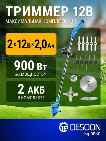 - Комплектация - Триммер - 1 шт- Защитный кожух - 1 шт- АКБ - 2 шт- Дополнительная рукоятка - 1 шт- Скоба - 1 штВ комплекте:- Металлическая насадка для сорняков - 1 шт- Леска со стальным сердечником - 5 шт- Зарядное устройство - 1 шт- Режущий диск 40Т - 1 шт- Металлический нож 2Т - 1 шт- Металлический нож 4Т - 1 шт- Пластиковые ножи - 5 шт- Торцевой ключ - 1 шт- Крепежный комплект - 1 шт- Руководство по эксплуатации - 1 шт