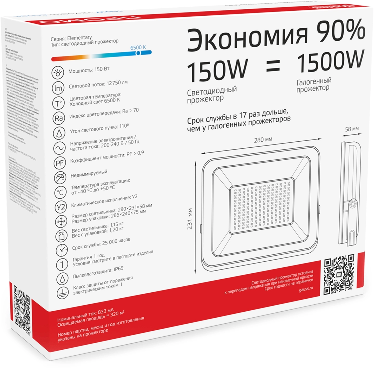 Прожектор уличный Gauss Elementary 613100150P