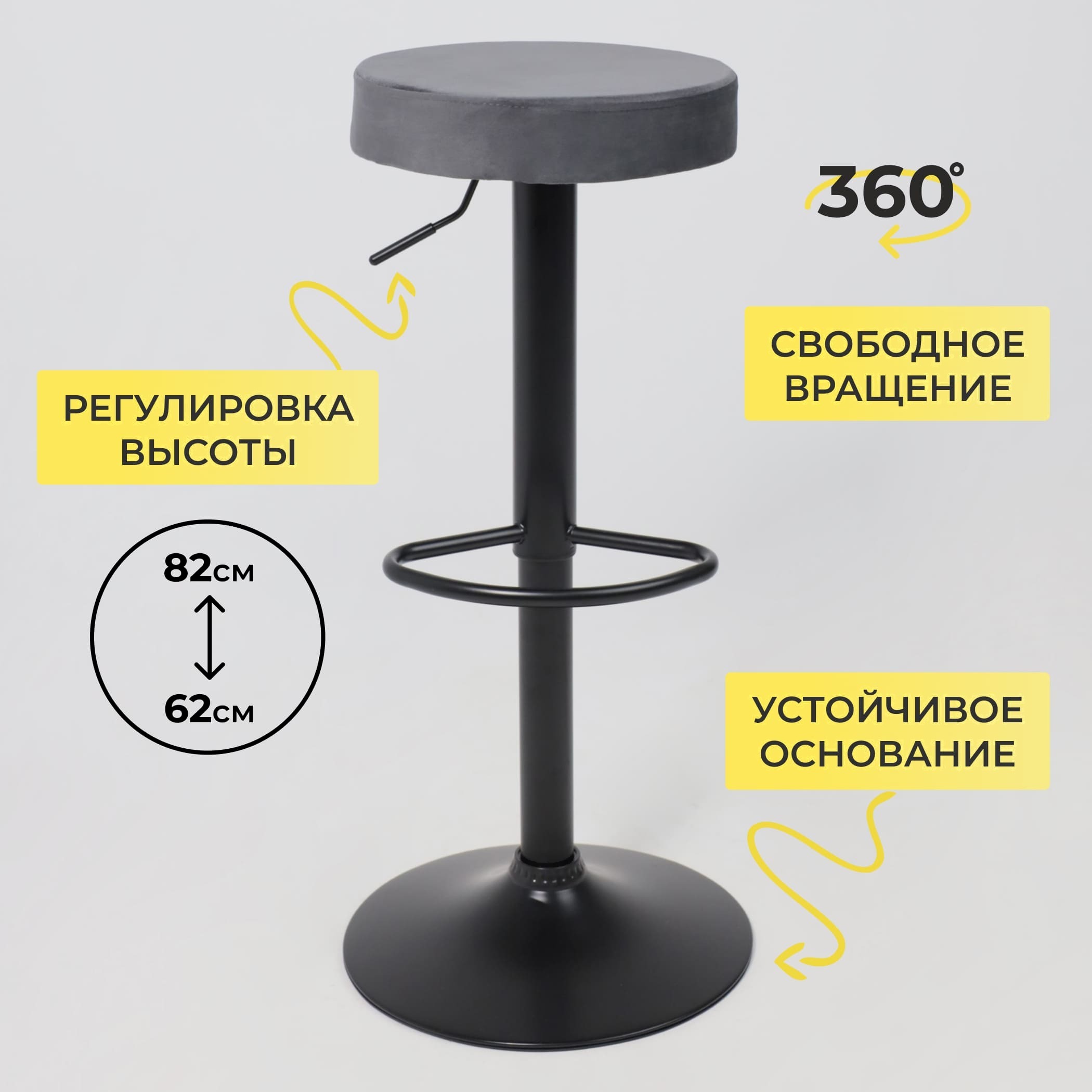 Табурет барный AksHome Lemma (серый велюр/черный)