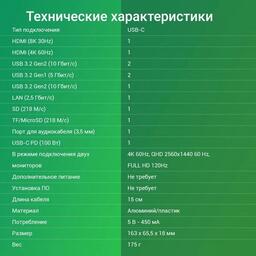 • Типы разъемов HDMI, USB 3.0 Type-A, USB Type-C, RJ-45 (LAN), USB Type-A 3.2 Gen1, аудиоразъем, USB PD