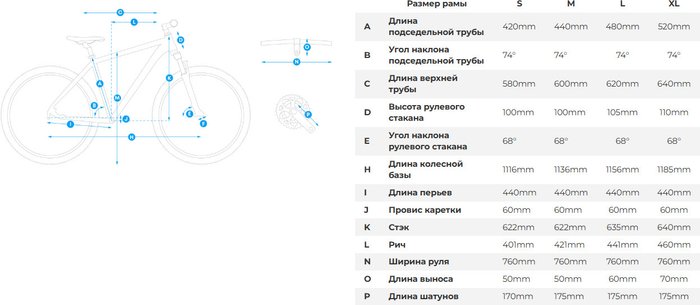 Характеристики рамыALU 6061, Hydroformed, Double butted tubes, Internal cables routing, Tapered head tube, Semi-Integrated head set, BSA, PM assymetric dropauts, Smooth welding, Trekking geometry