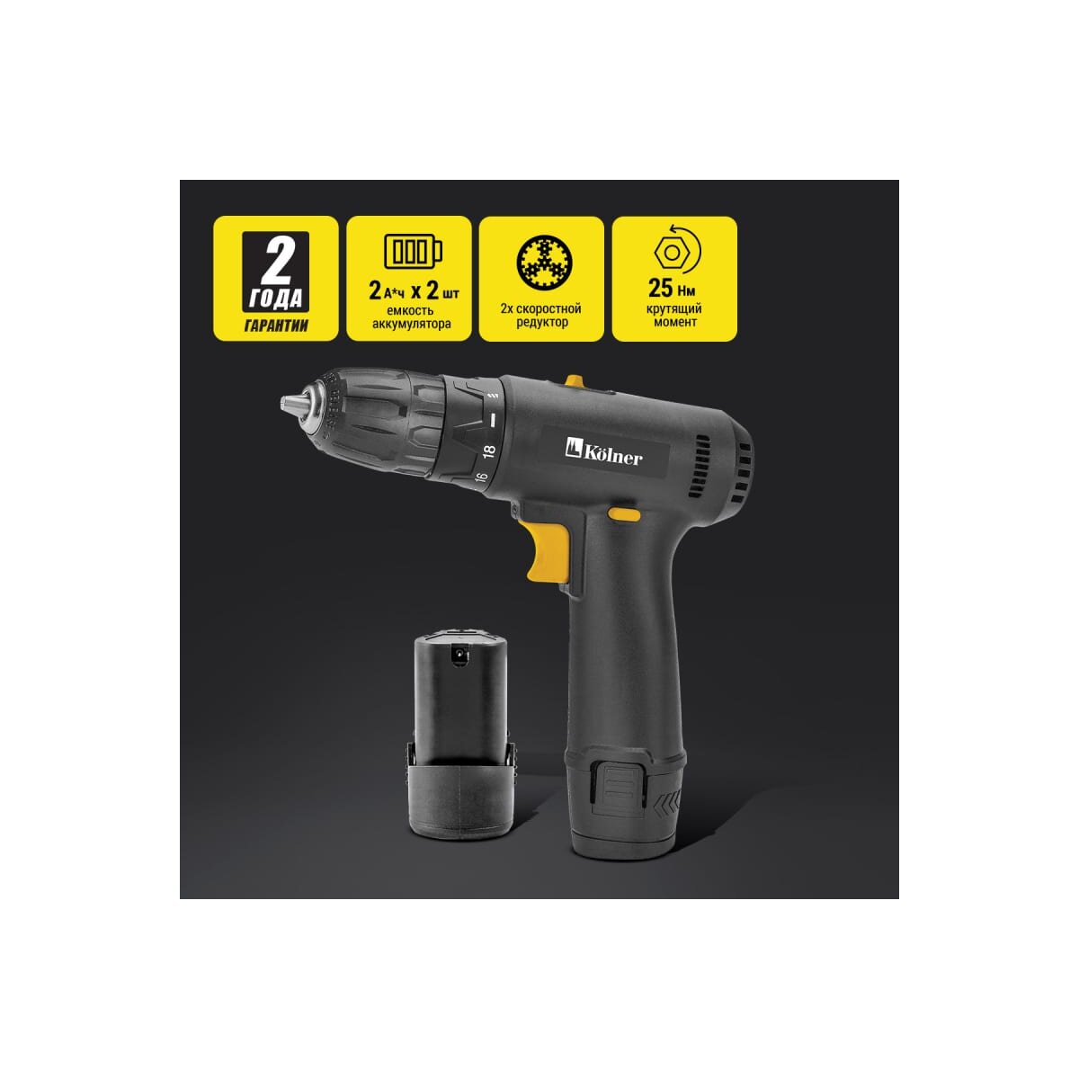 Дрель-шуруповерт аккумуляторная Kolner KCD 12/2L