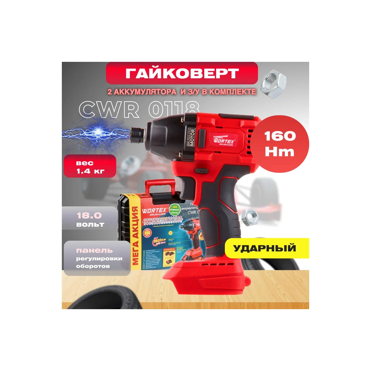 Шуруповерт-винтоверт WORTEX CWR 0118 ALL1 (0329286) ударный 2АКБ+ЗУ