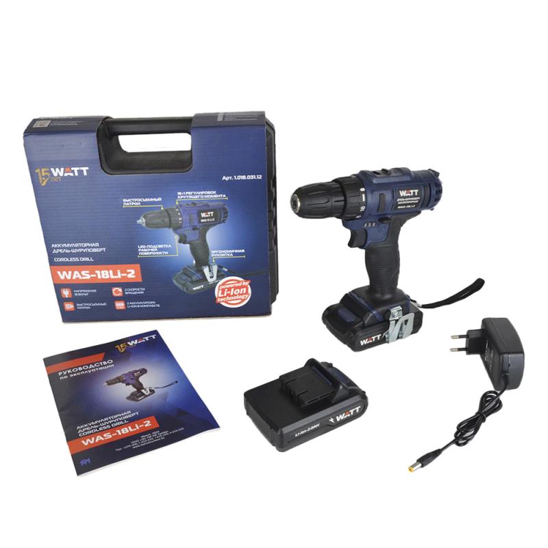 Дрель-шуруповерт Watt WAS-18 Li-2 (101803112) кейс