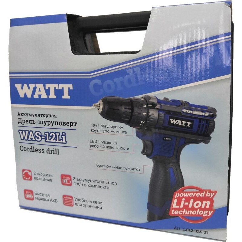 Дрель-шуруповерт Watt WAS-12Li (1.012.025.21) с 2-мя АКБ, кейс