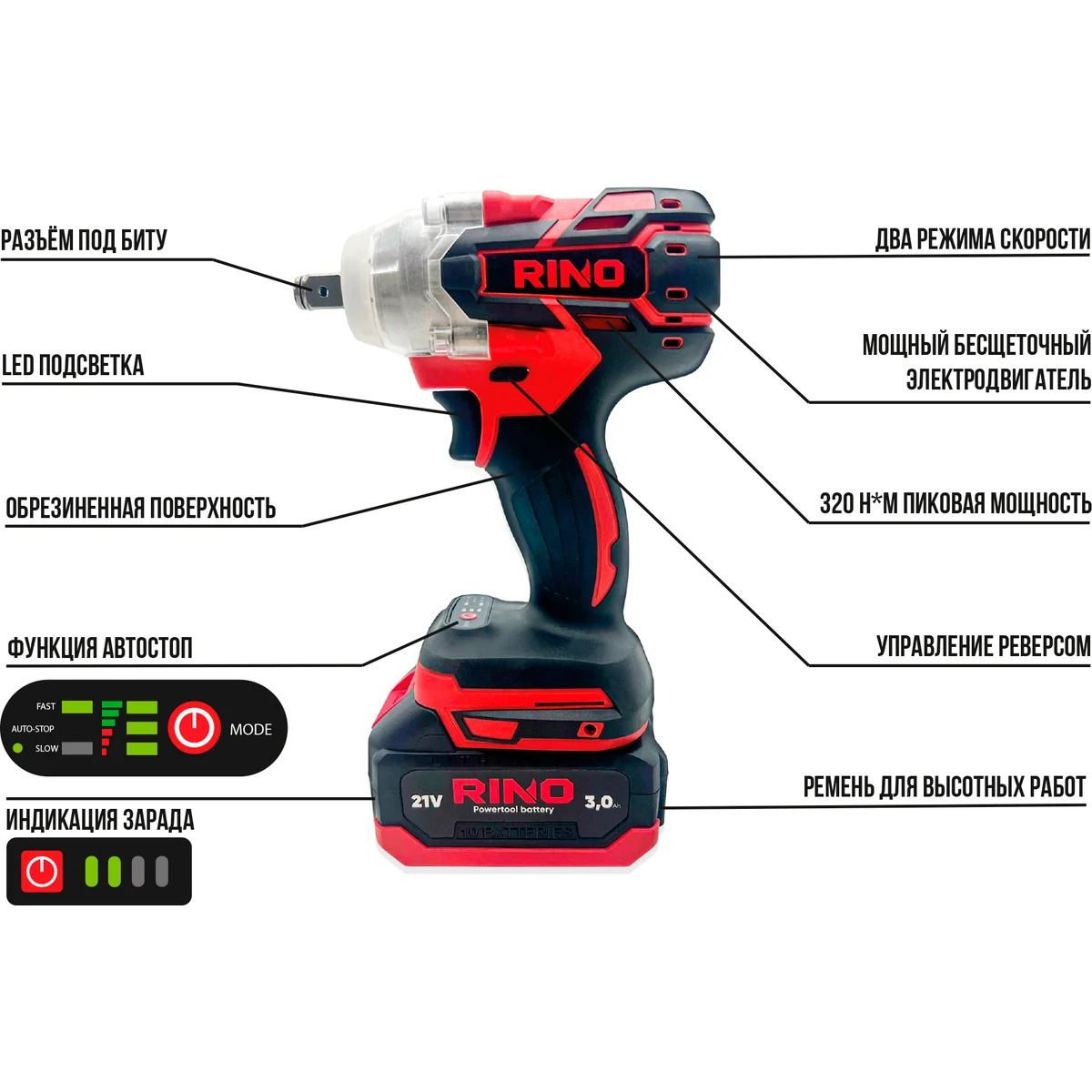 Гайковёрт RINO WR1-2C АКБ+ЗУ