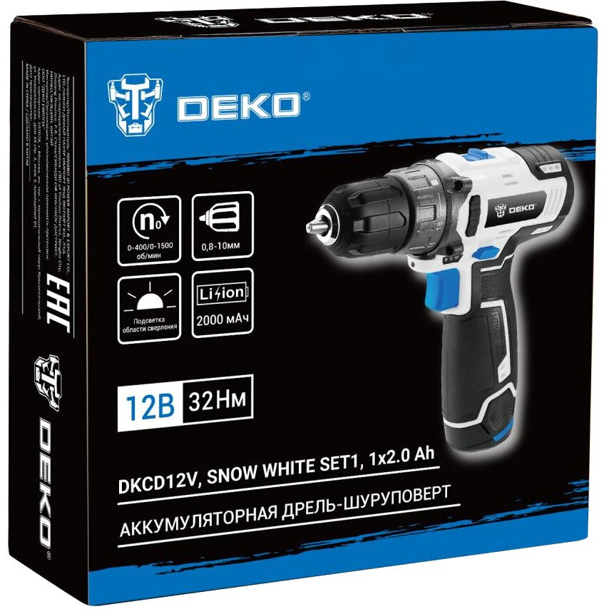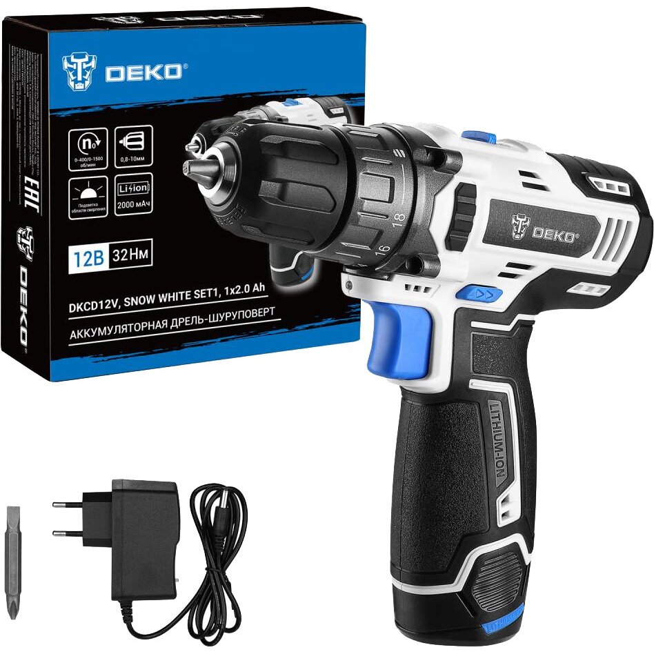 Дрель-шуруповерт аккумуляторная DEKO DKCD12V (083-1106) Snow White 1х2.0 Ач SET1