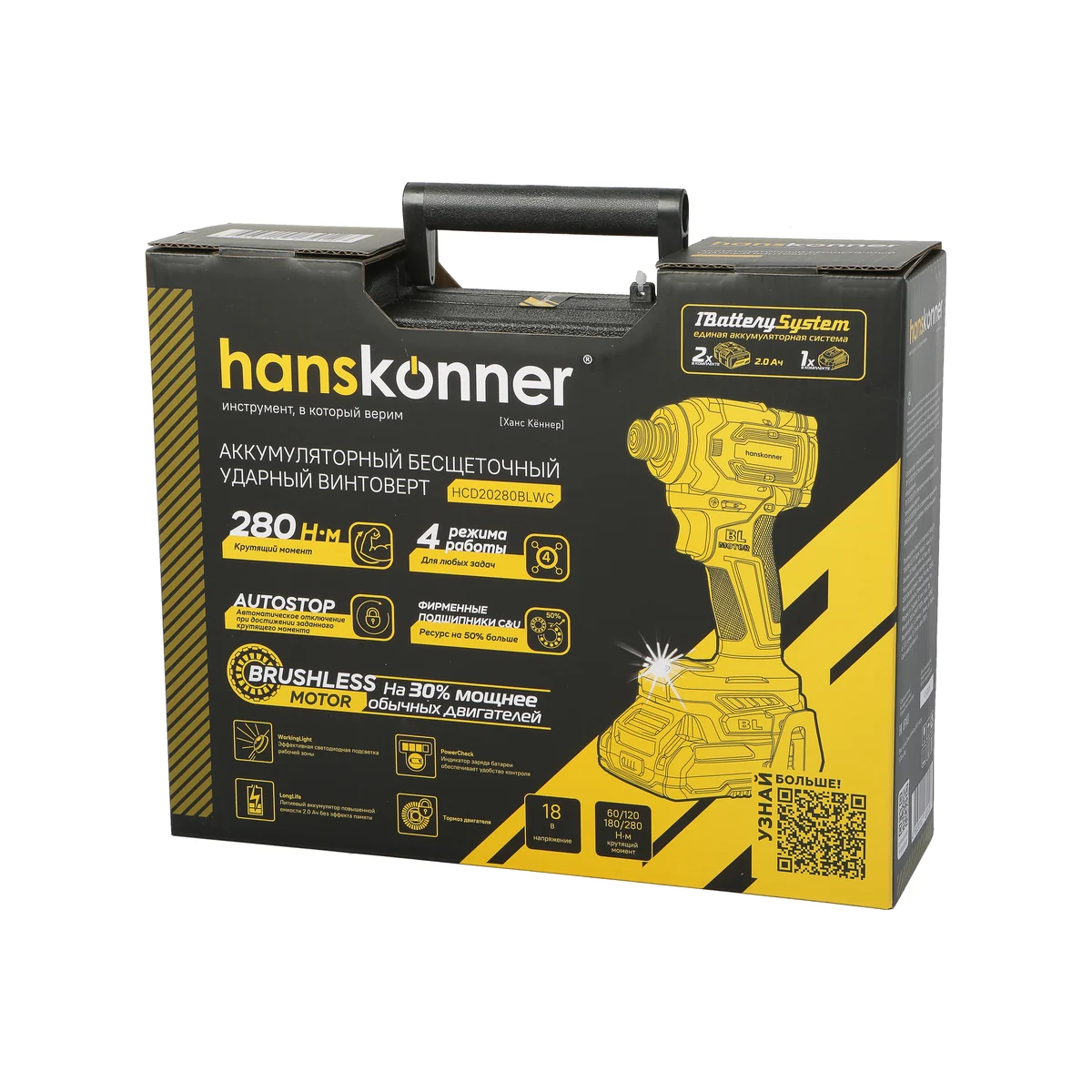 Винтоверт Hanskonner HCD20280BLWC удар 2x2Ач