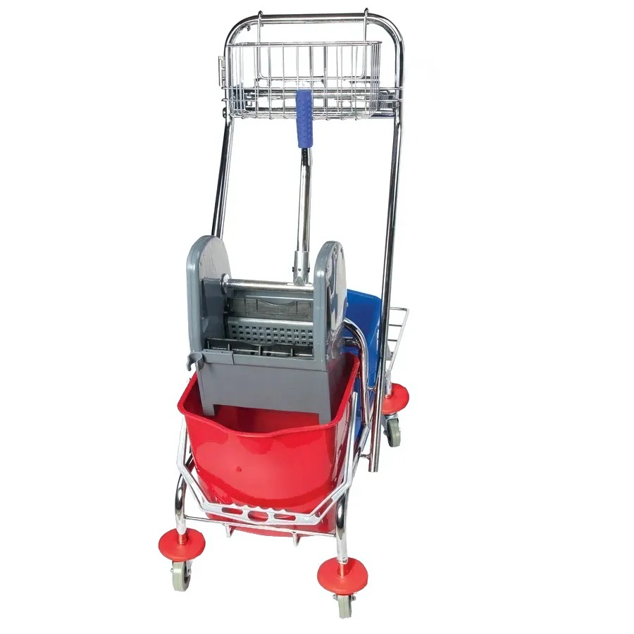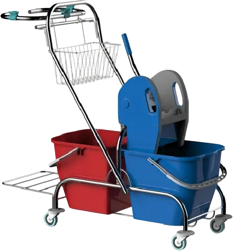 - Комплектация ведро (2 шт.), тележка, решетка для отжима, колесо (4 шт.), лоток (корзина для инвентаря), держатель для мусорного мешка