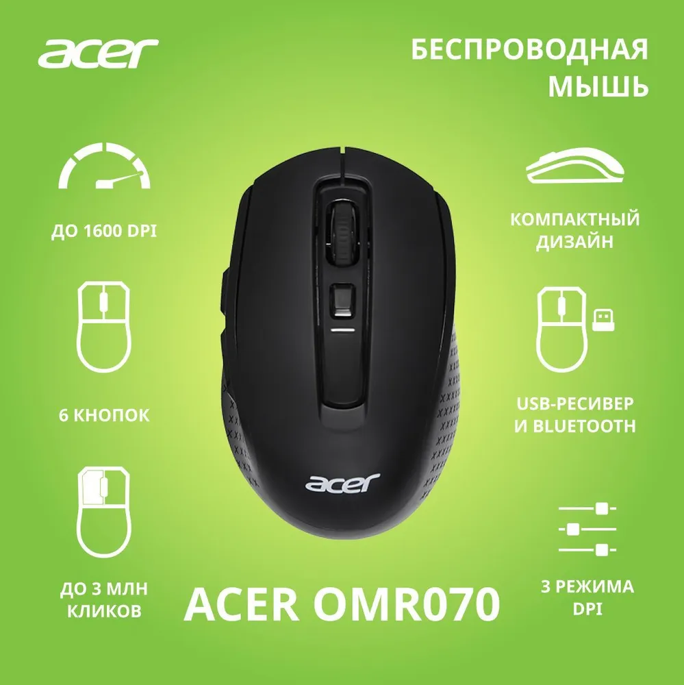 Мышь компьютерная/ Беспроводная мышь Acer OMR070 оптическая (1600dpi) BT/Radio (6but) black
