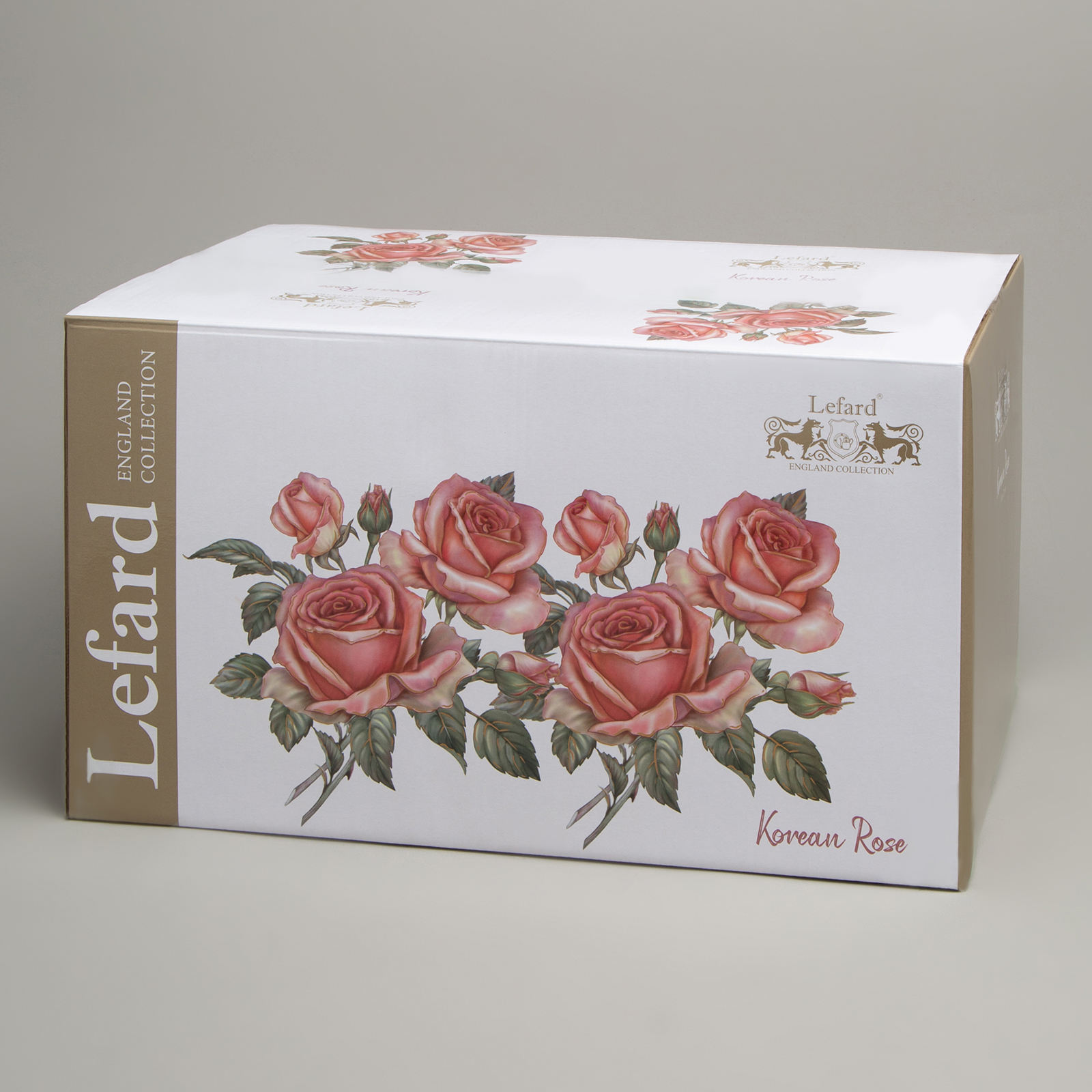 TM LEFARD коллекция "Корейская роза" - это ремейк эксклюзивной коллекции роз на современных формах с окантовкой под золото. Нежные цветы легко узнаваемы и любимы многими. Роза - королева цветов, она популярна во всём мире с древних времен. Этот цветок выглядит изящно и утончённо, считается символом любви, красоты и романтики. Тонкостенный белый фарфор, рельефная деколь, красочная упаковка делают предметы коллекции прекрасным подарком по любому случаю. Продукция сертифицирована и безопасна для контакта с пищевыми продуктами. Можно использовать в микроволновой печи, не рекомендуется мыть в посудомоечной машине.