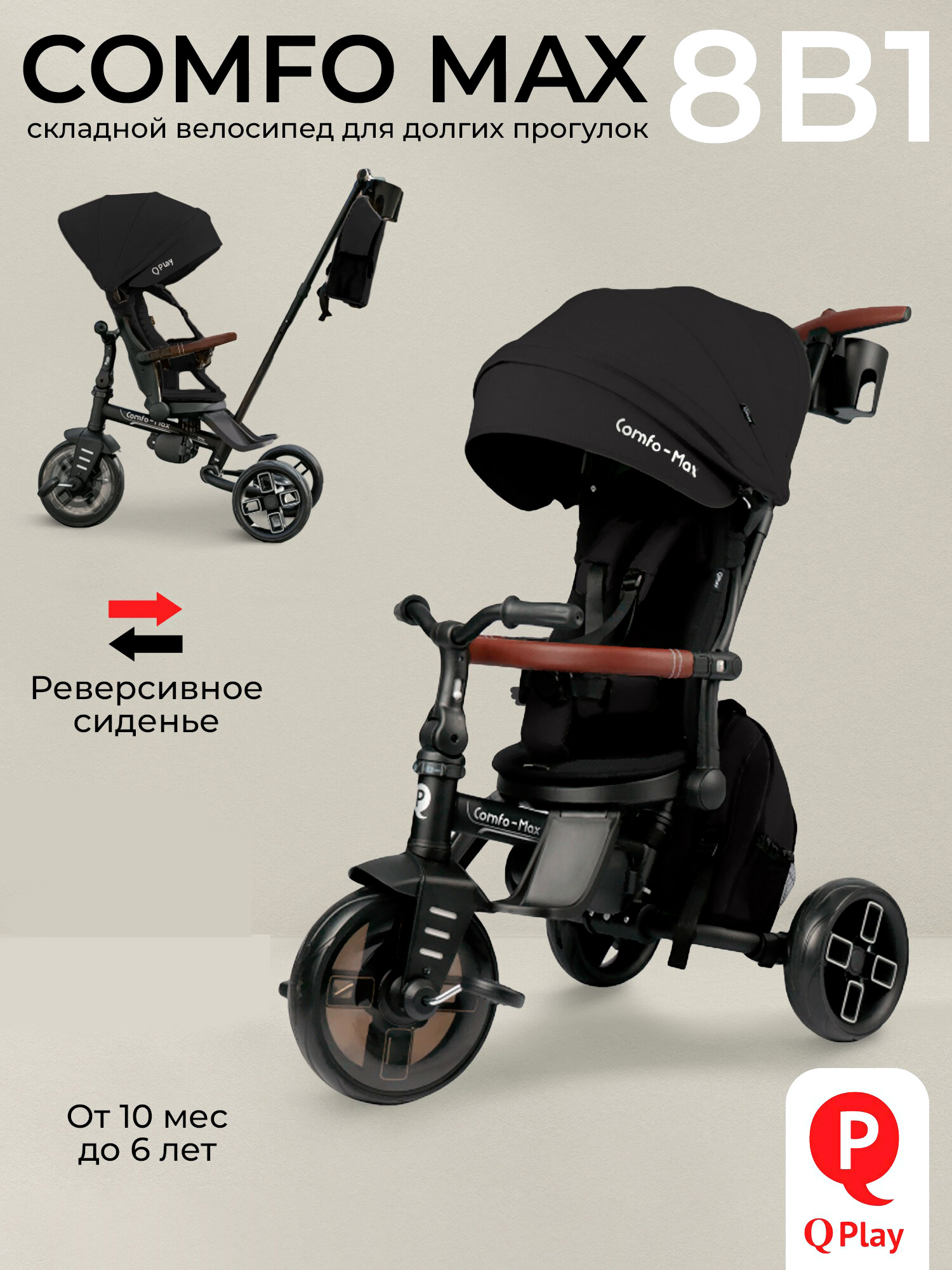 Трехколесный велосипед с ручкой QPlay T70 Comfo Max (черный)