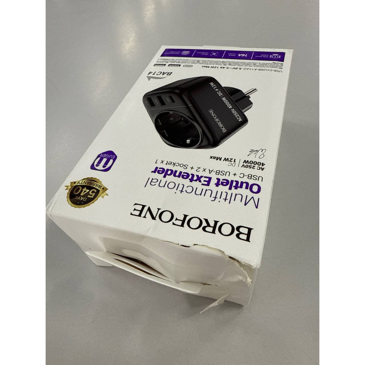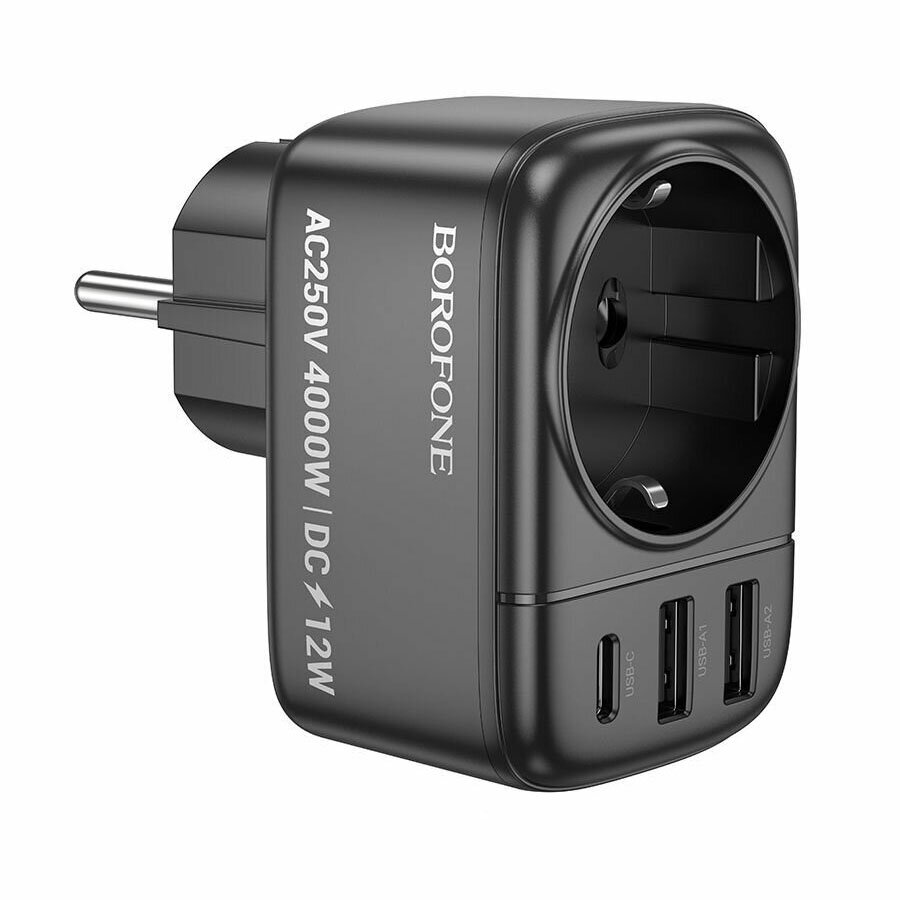 УЦ Переходник сетевой BOROFONE BAC14 Wide 1-socket wall outlet (1C2A) черный (плохая упаковка)