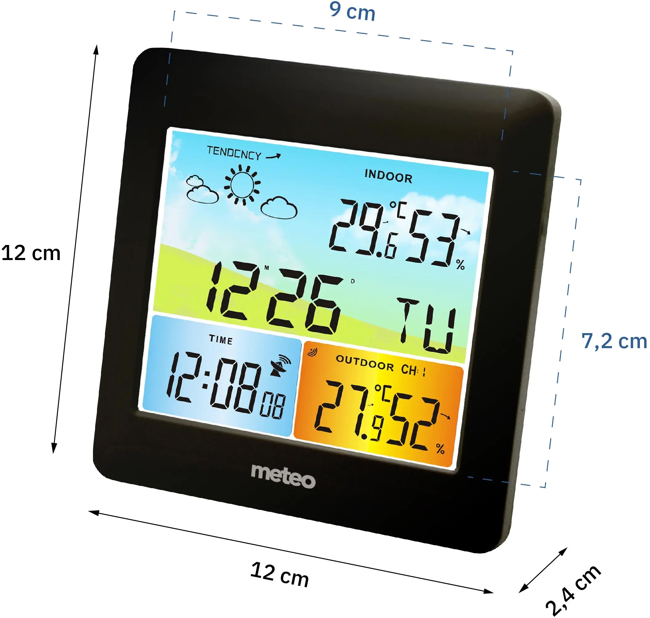 • Размеры метеостанции 120x120x24 мм