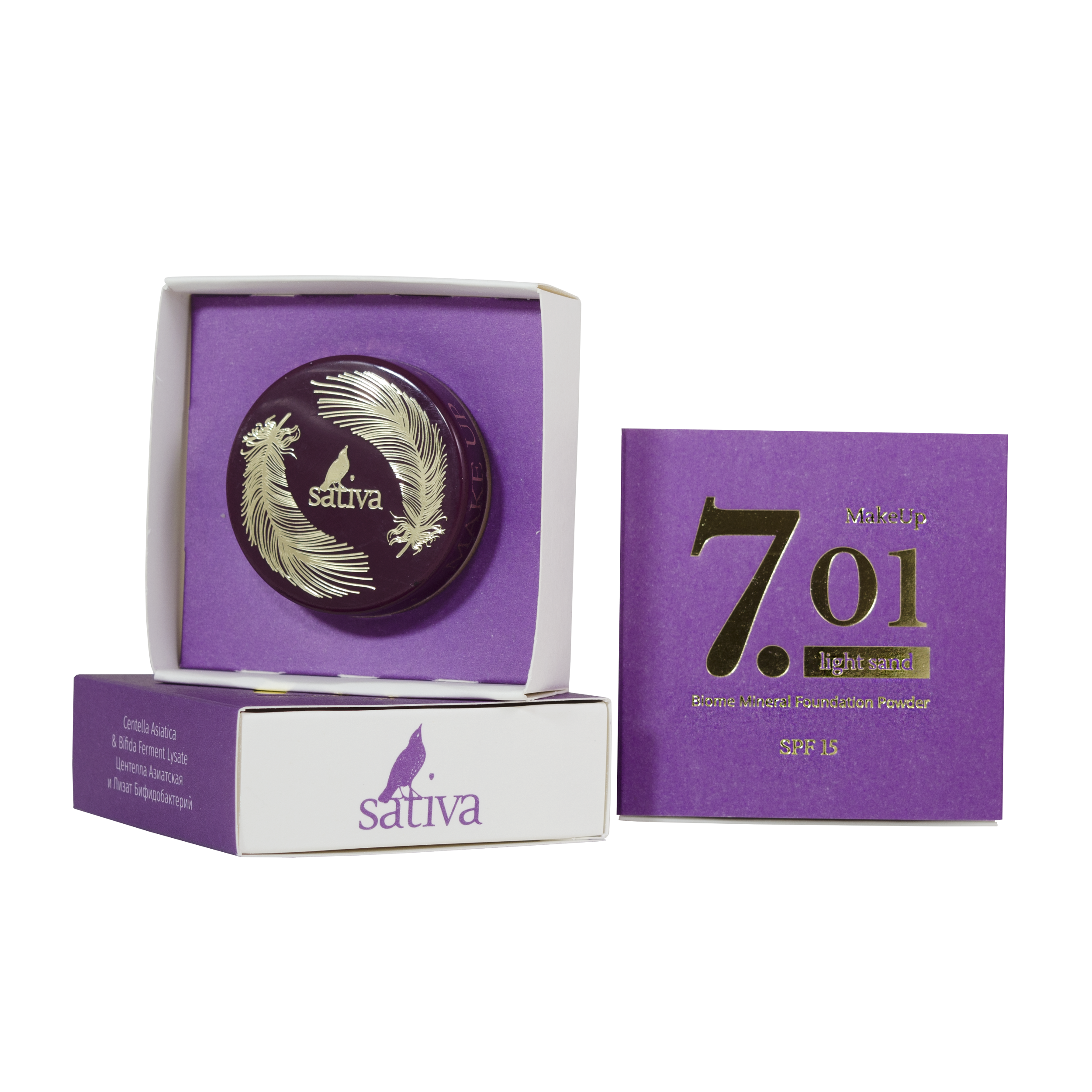 Пудра компактная Sativa Минеральная пудра-основа биомная тон 7.01 Light Sand (5г)