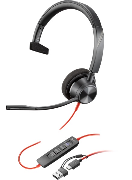 Poly Blackwire 3310 Monaural Microsoft Teams Certified USB-C Headset +USB-C/A Adapter [8X216AA]